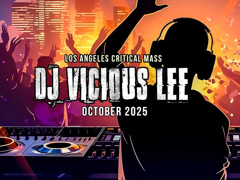 This year, DJ Vicious Lee joins forces with the Los Angeles Critical Mass staff to deliver a ride-night experience like no other. Together, they’re curating the break party, commanding the energy, and celebrating the creativity of the community. Vicious Lee will be spinning live and taking the mic as MC for the Hollywood Halloween Costume Contest, where three riders will be crowned: 1st, 2nd, and 3rd place. Expect bold looks, wild energy, and serious bragging rights.
