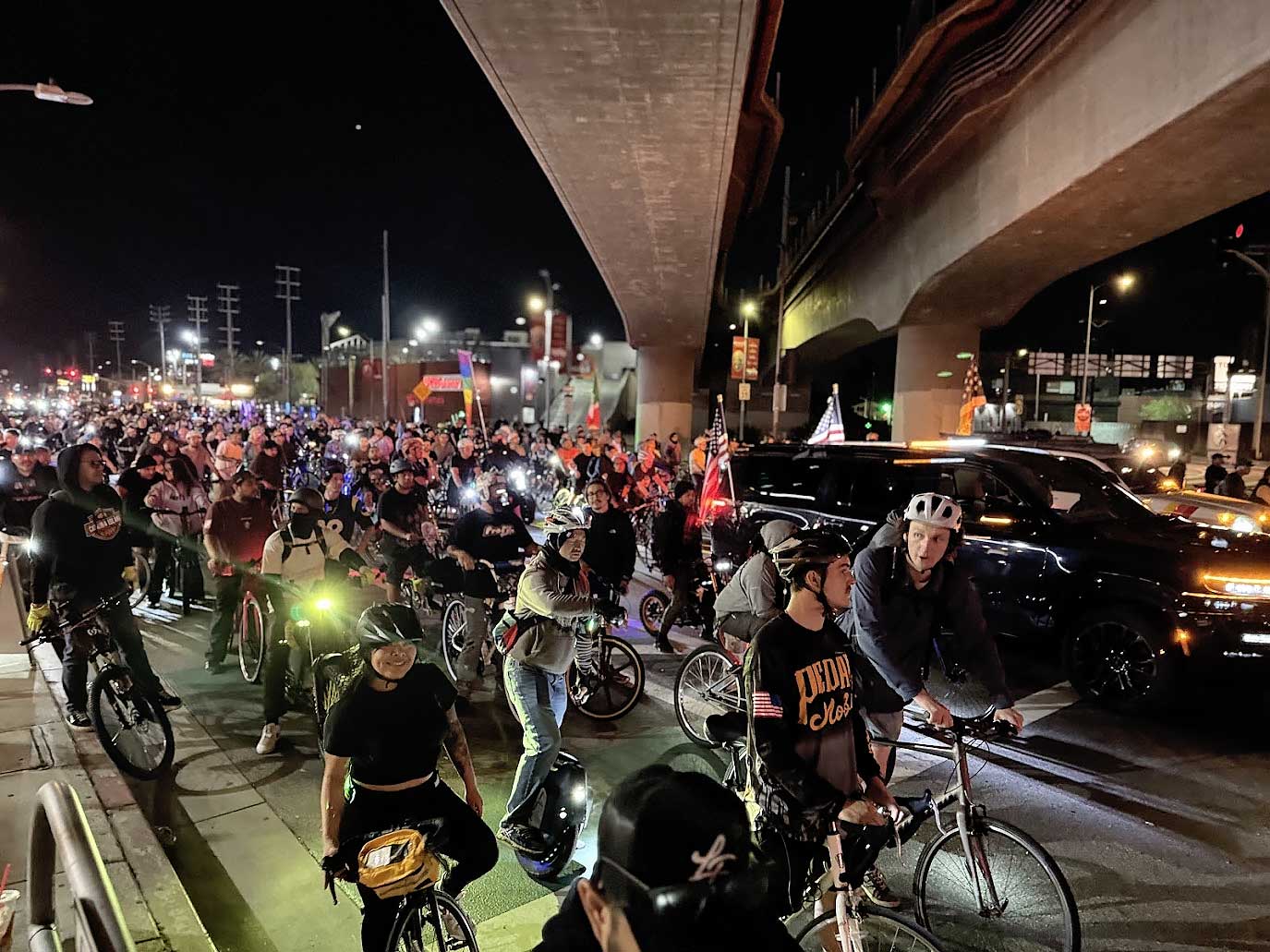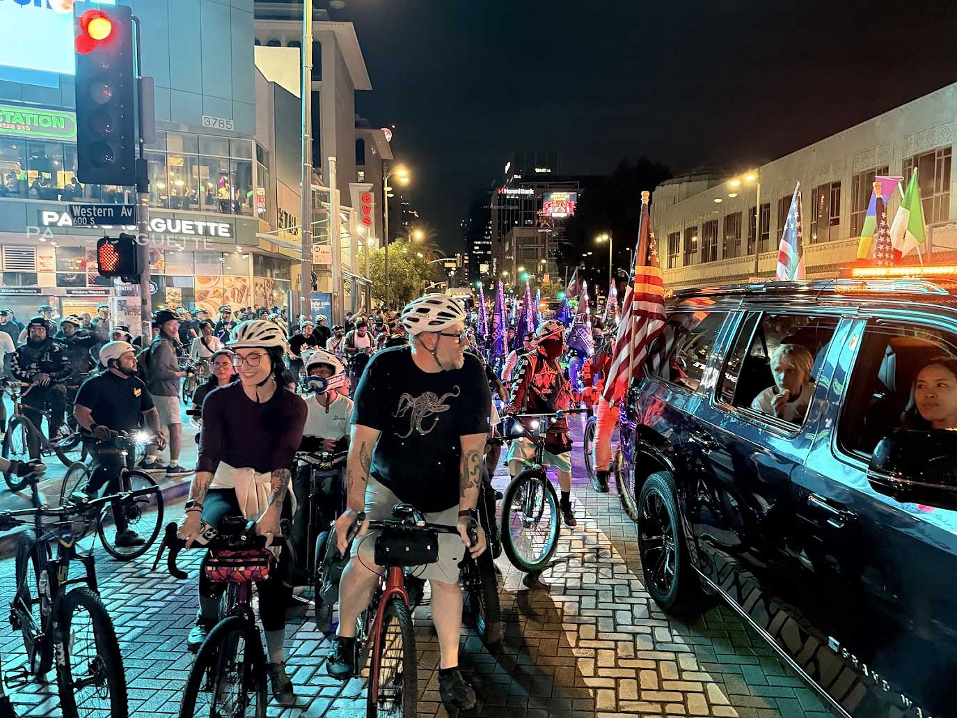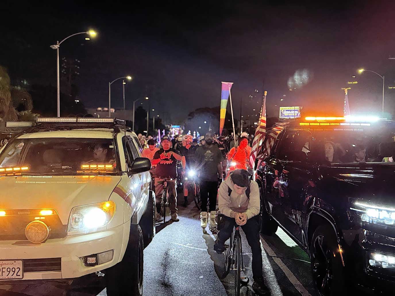 By the time the mass reached Hollywood, the city felt changed. People on sidewalks cheered. Cars honked in support. The message had spread far beyond the cycling community.