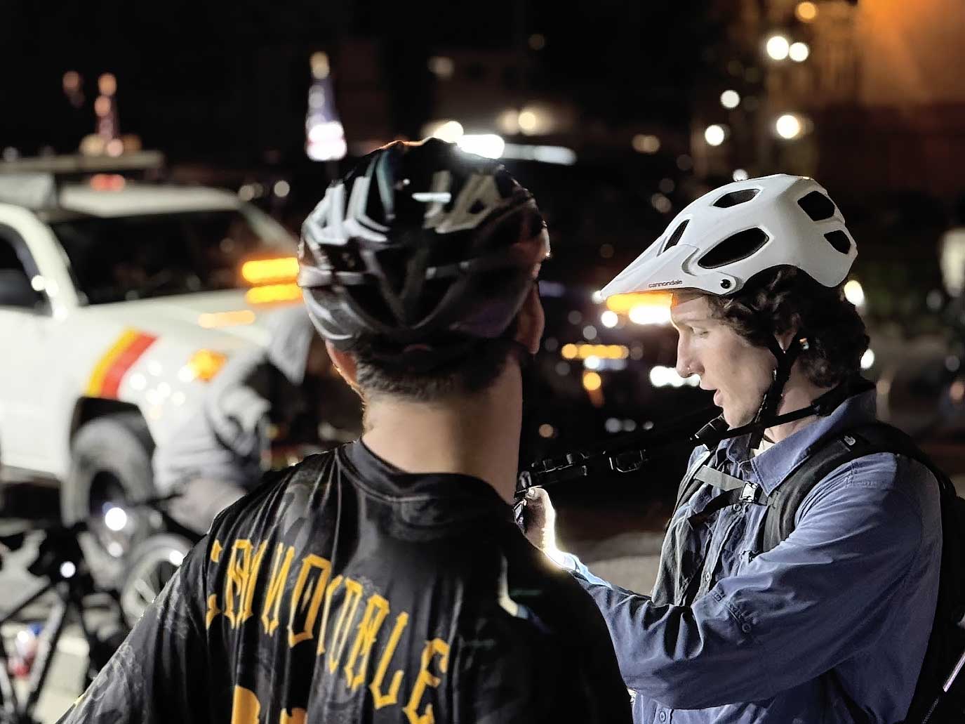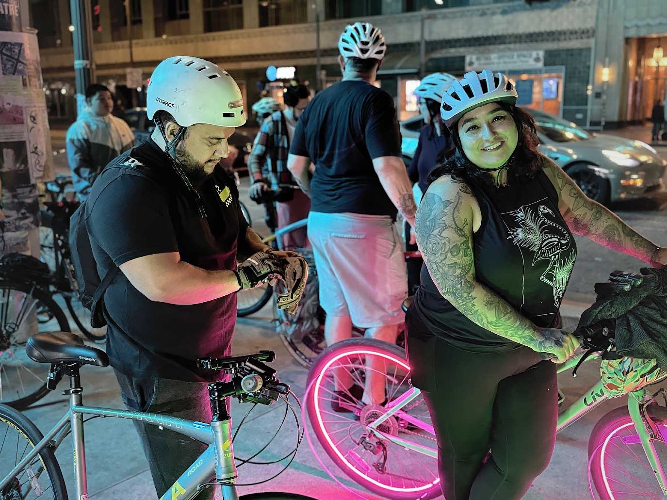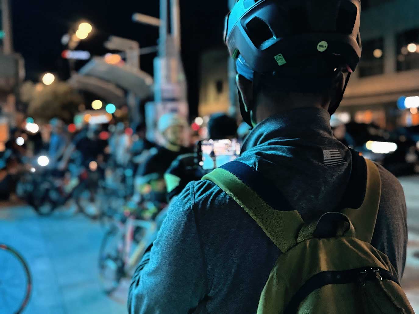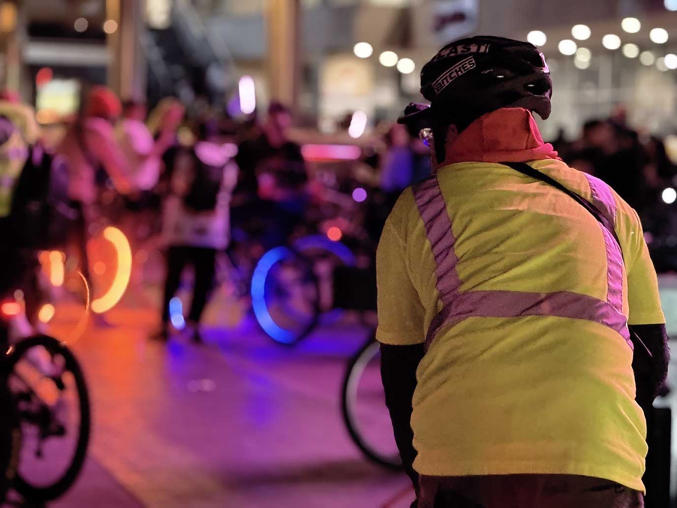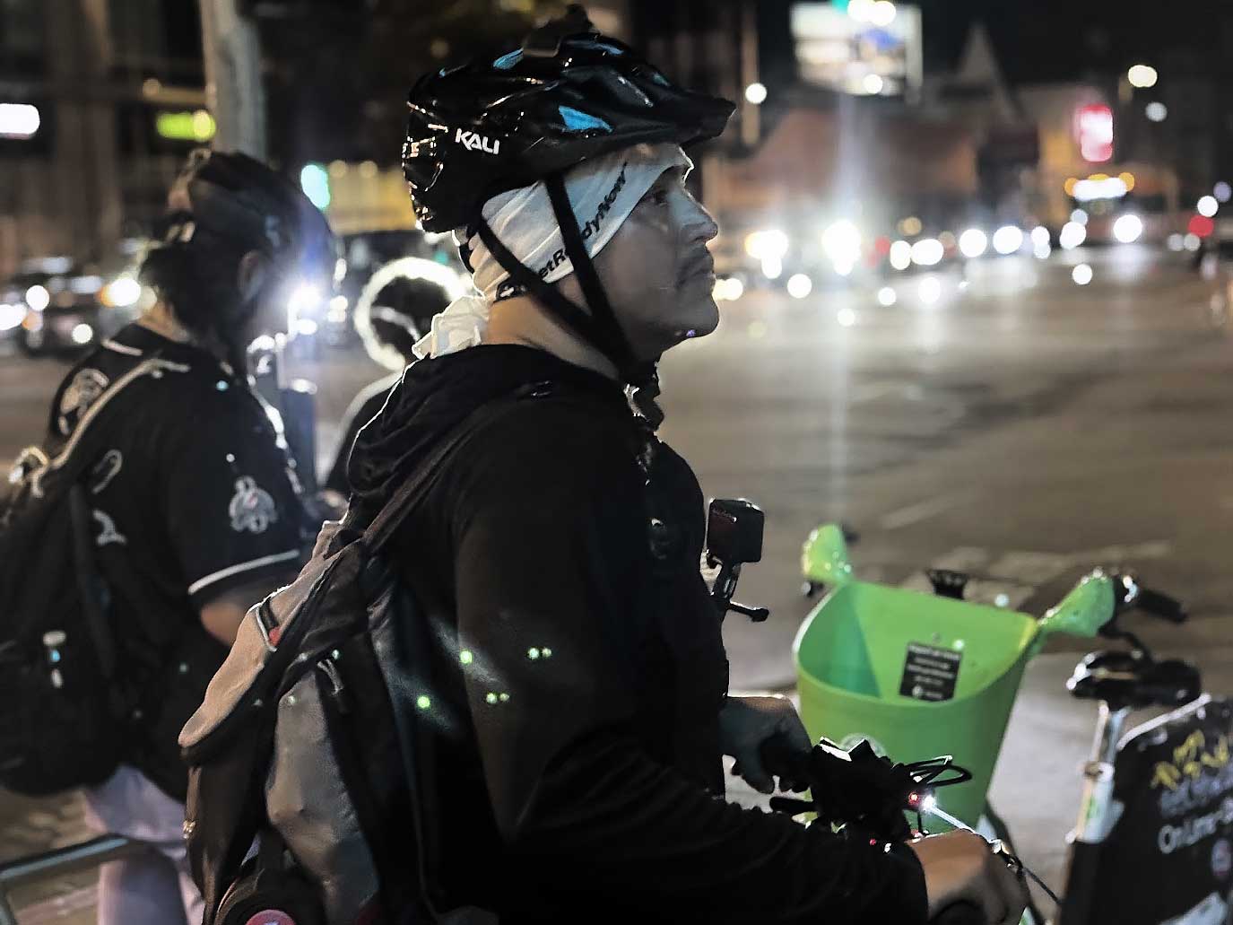 The group followed the creek back to Dock 52, where riders gathered again to wait for the rest of the mass to arrive. The atmosphere was calm and reflective. Some riders stretched, others talked quietly, and many simply stood together, processing the gravity of the night. Once the final groups reached Dock 52, the mass prepared for the long return east.