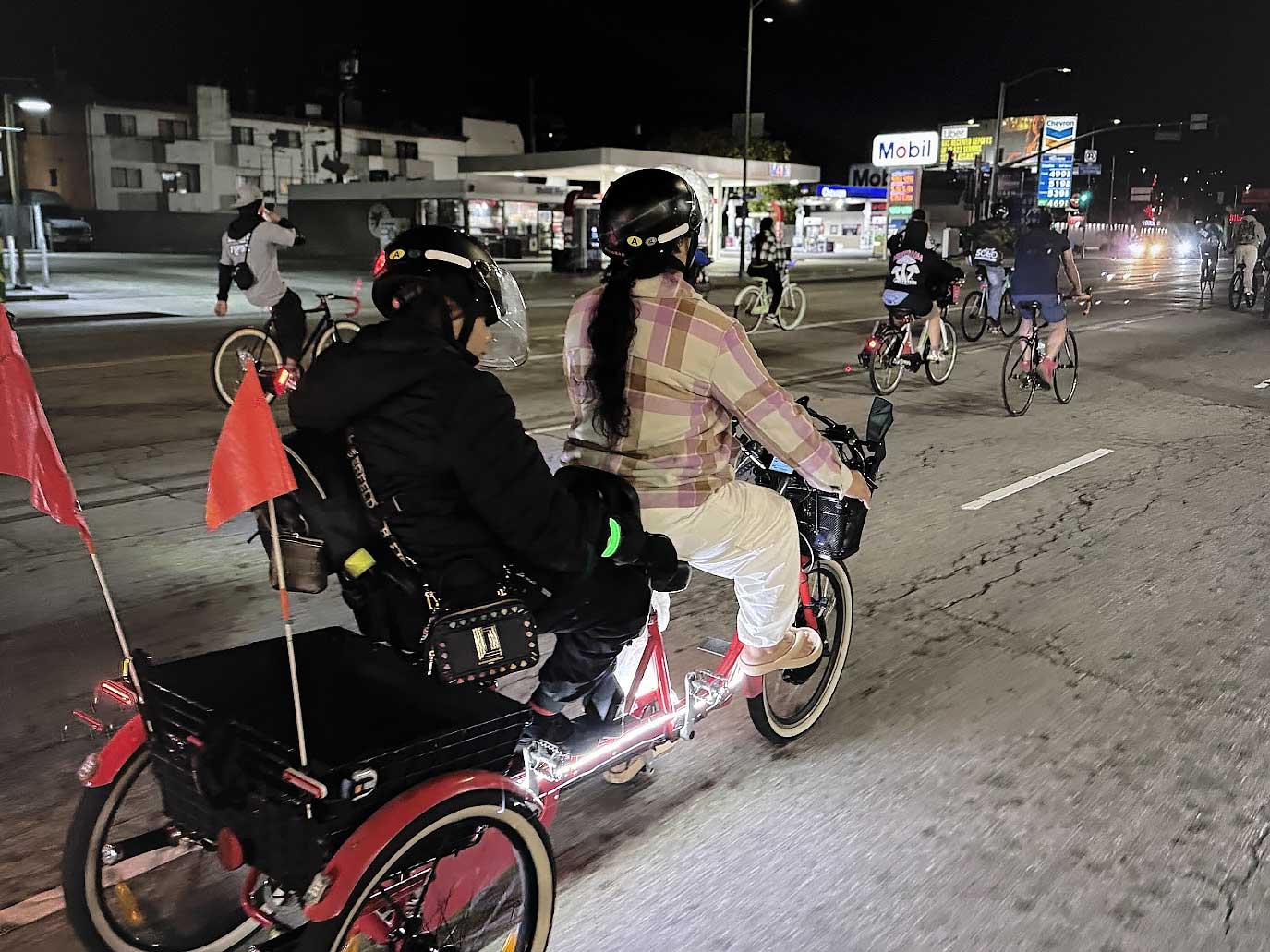 From Marina del Rey, the ride continued back through Culver City, retracing the route toward Koreatown. Along the way, some participants chose to take public transportation home — tired, emotional, or simply needing rest after the long ride. But many others were determined to complete the full journey, choosing to make the long trek back to HQ with the group.