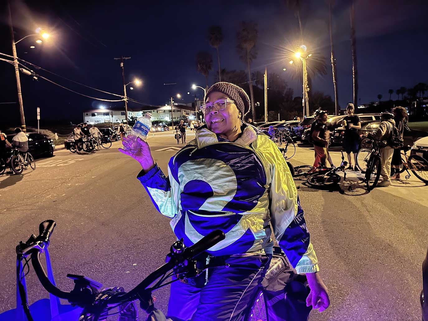 The next major stop was Dock 52 in Marina del Rey, where the ride re‑formed before heading onto the scenic Ballona Creek bike path. Under the glow of thousands of bike lights, riders crossed the waters that separate Marina del Rey from Playa del Rey — the Pacific Ocean on one side, Ballona Creek on the other.