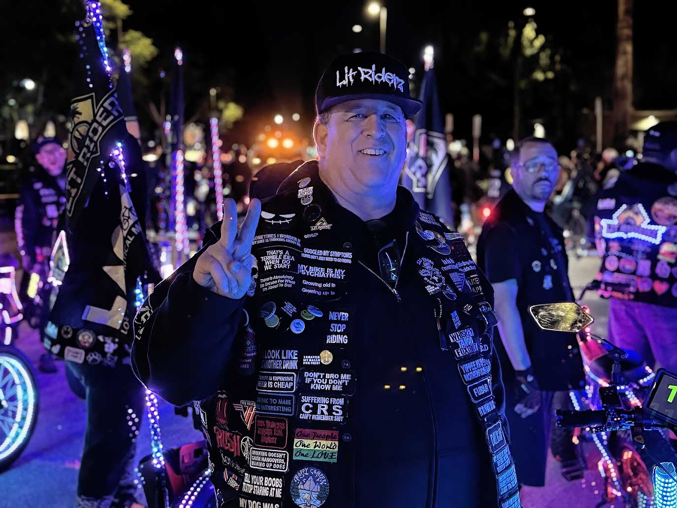 Riders began arriving early — hundreds by 6:30 PM, filling the sidewalks and corners around the intersection. By the time the official roll‑out approached, the crowd had swelled into the thousands, stretching across blocks in every direction. Local TV news crews captured the scene as riders adjusted lights, checked in with friends, and spoke quietly among themselves, aware that this night carried a deeper purpose.