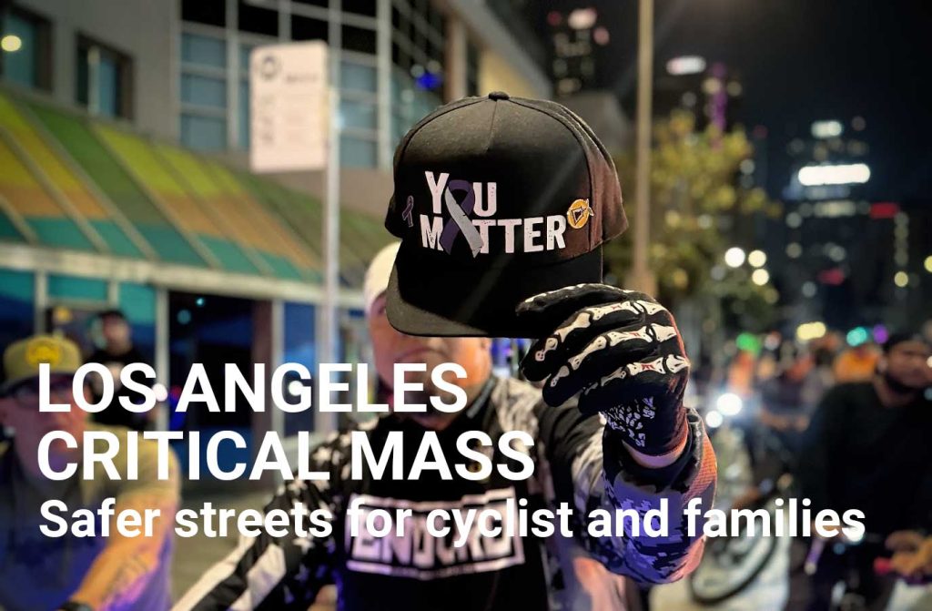 As the largest community bicycle ride in the United States, Los Angeles Critical Mass brings together thousands of cyclists every month. We ride to celebrate community, to reclaim public space, and to make ourselves visible in a city where too many lives are lost to preventable traffic violence.