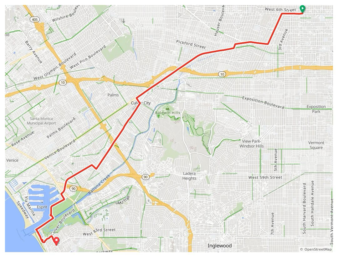 Fiji Way → Ballona Creek Path → Pacific Ave